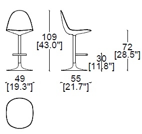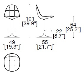 245/247 Caprice diseñada por Philippe Starck para Cassina es un taburete disponible en dos alturas. La base está en el mismo acabado de la carcasa o en aluminio pulido. El reposapiés es cromado para todos los acabados. Tapizado delantero con el revestimiento en cuero o tejido.