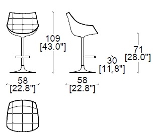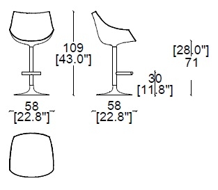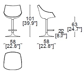 246/248 Passion diseñada por Philippe Starck para Cassina es un taburete disponible en dos alturas. La base está en el mismo acabado de la carcasa o en aluminio pulido. El reposapiés es cromado para todos los acabados. Tapizado delantero con el revestimiento en cuero o tejido.