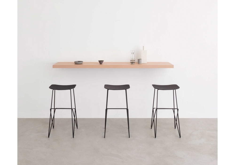 Endless 719 diseñado por Arik Levy para Desalto es un taburete con base en acero. Asiento en MDF lacado o recubierto en roble. El reposapiés está protegido por un perfil de acero inoxidable, excepto la versión con base de cromo. Disponible en dos tamaños.