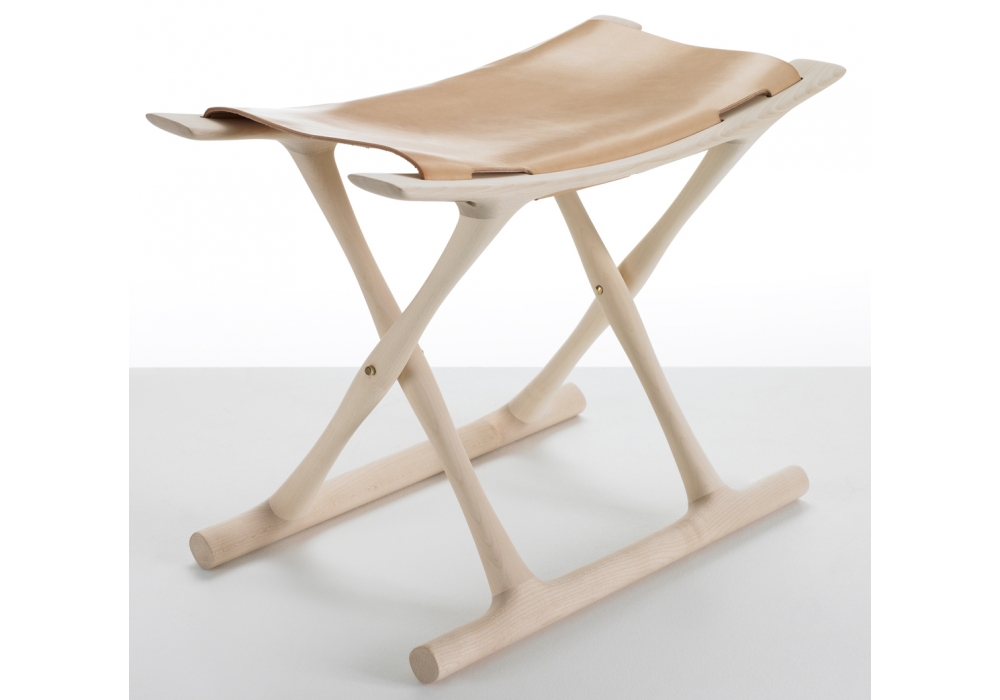 OW2000 Egyptian diseñado por Ole Wanscher para Carl Hansen & Søn es un taburete plegable con estructura de roble macizo y asiento de cuero en varios acabados.