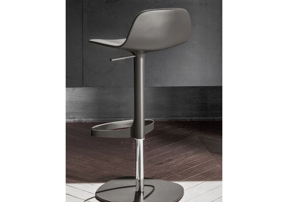 Bonnie es un taburete diseñado por Gino Carollo para Bonaldo. La estructura está pintada en acero para que coincida con el asiento, equipado con reposapiés.