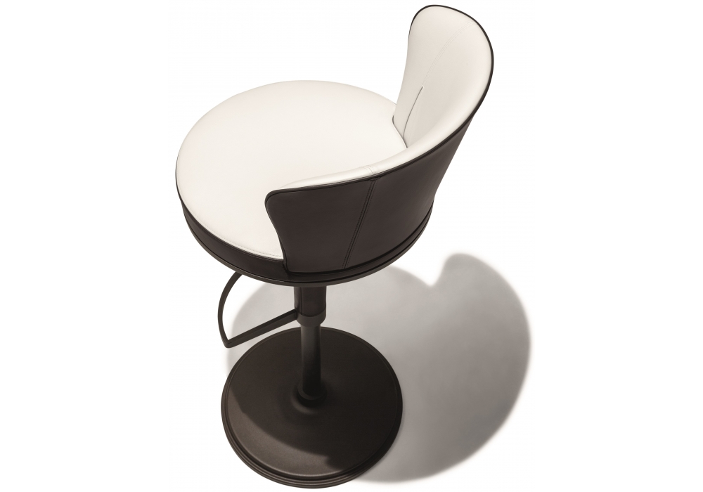 Ode diseñado por Chi Wing Lo per Giorgetti es un taburete bar giratorio con revestimiento, que no es desmontable, disponible en tejido o piel en un color o en dos colores con carcasa en piel y interno en tejido o piel.