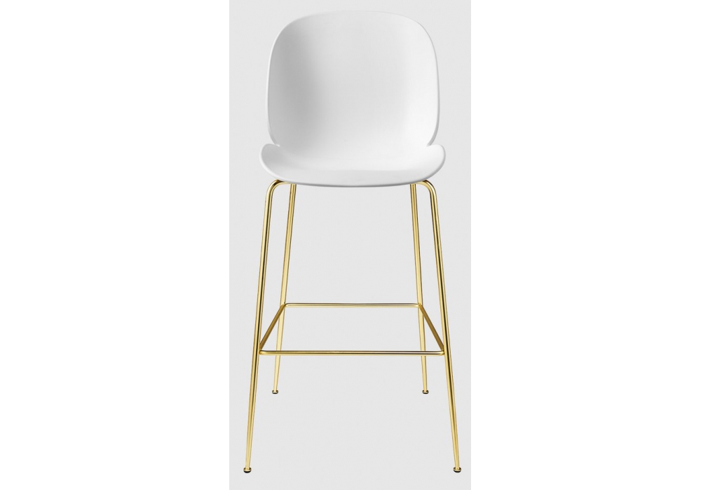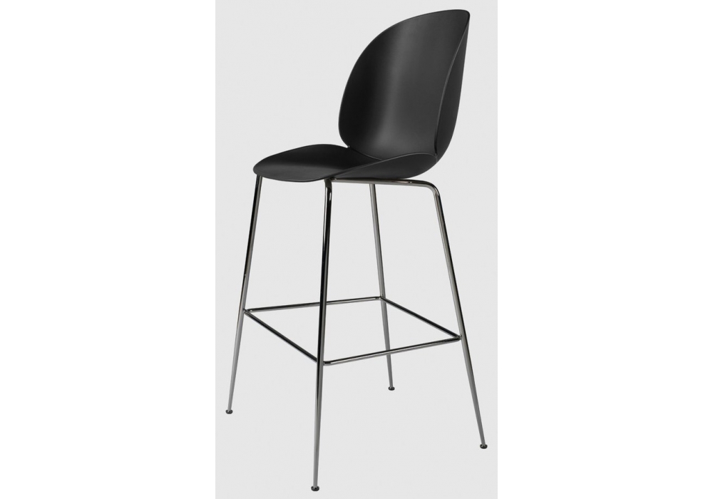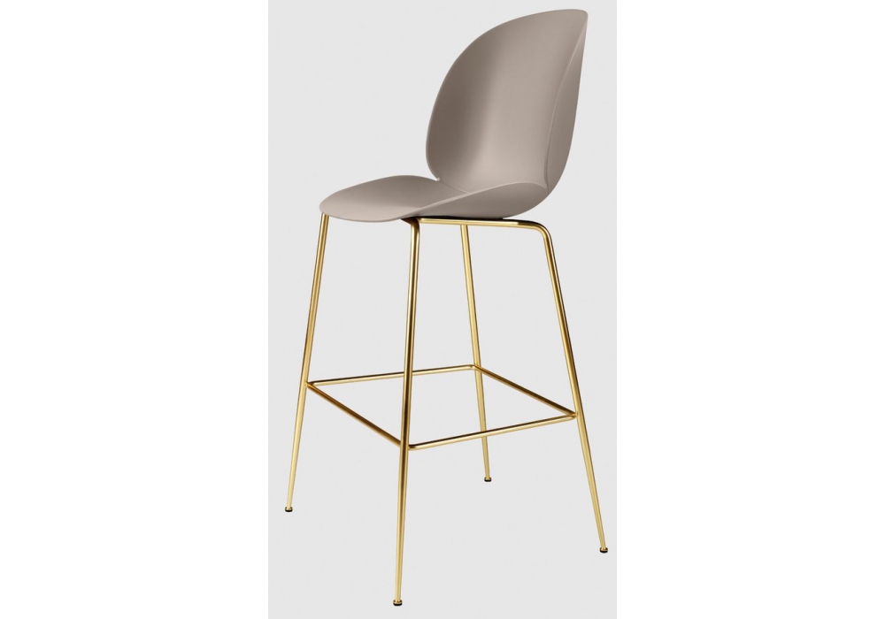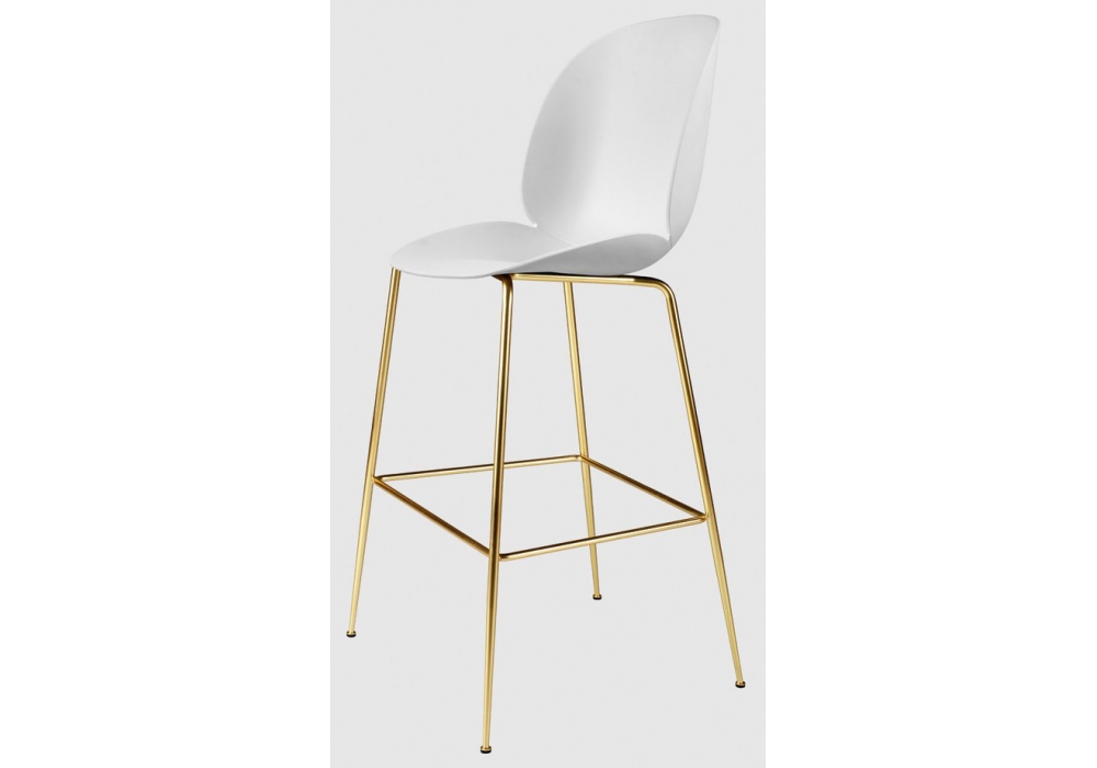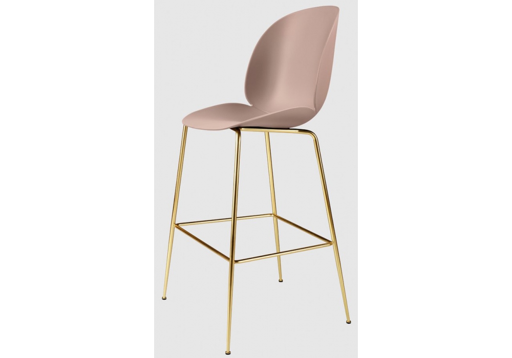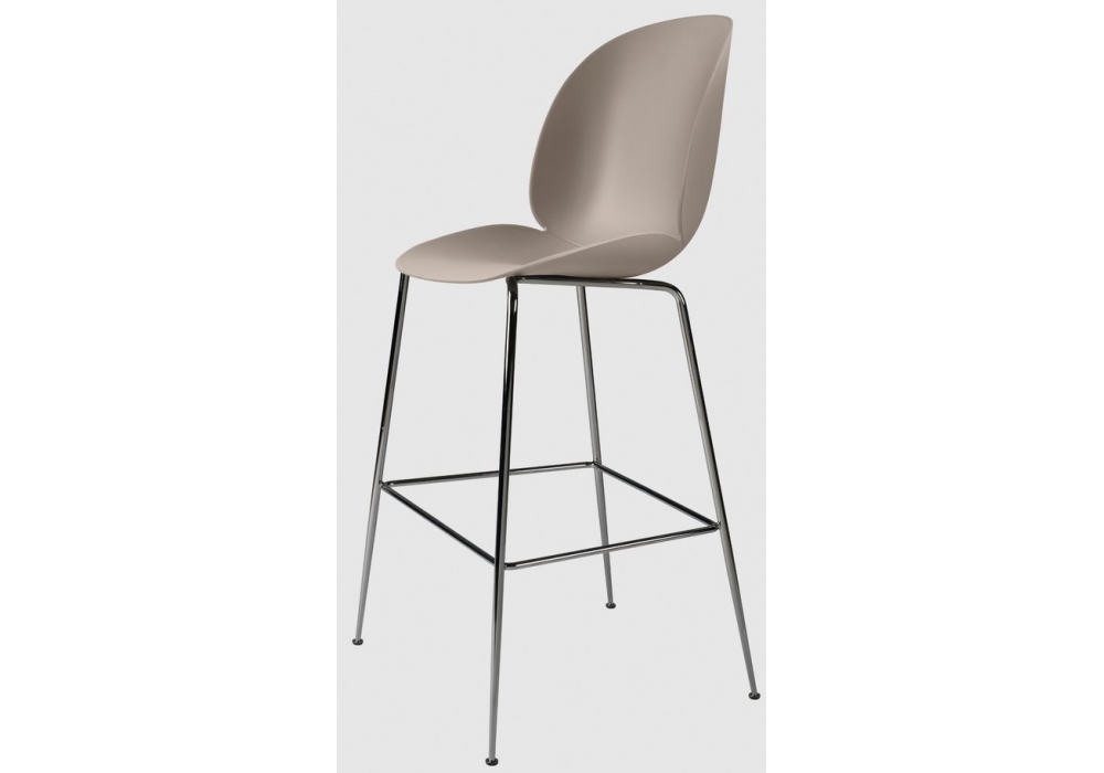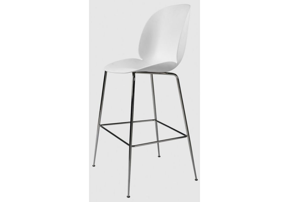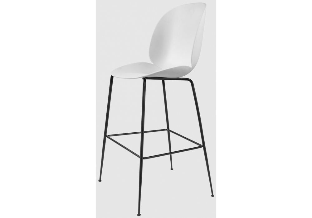 Beetle diseñada por GamFratesi para Gubi es una silla bar con base cónica en acero pintado. Carcasa de polipropileno disponible en diferentes acabados.