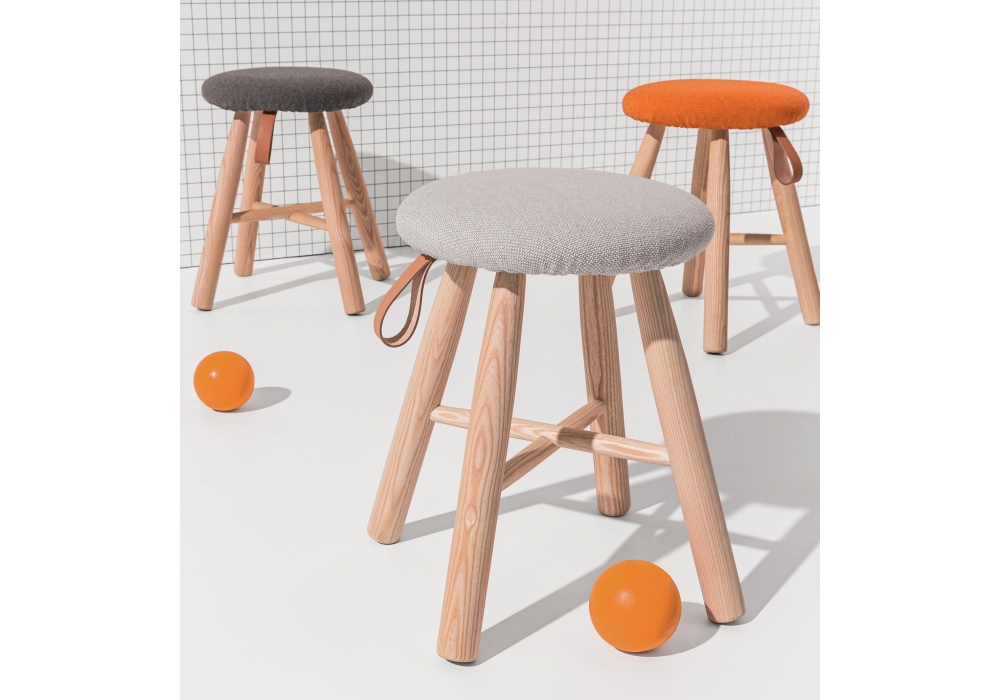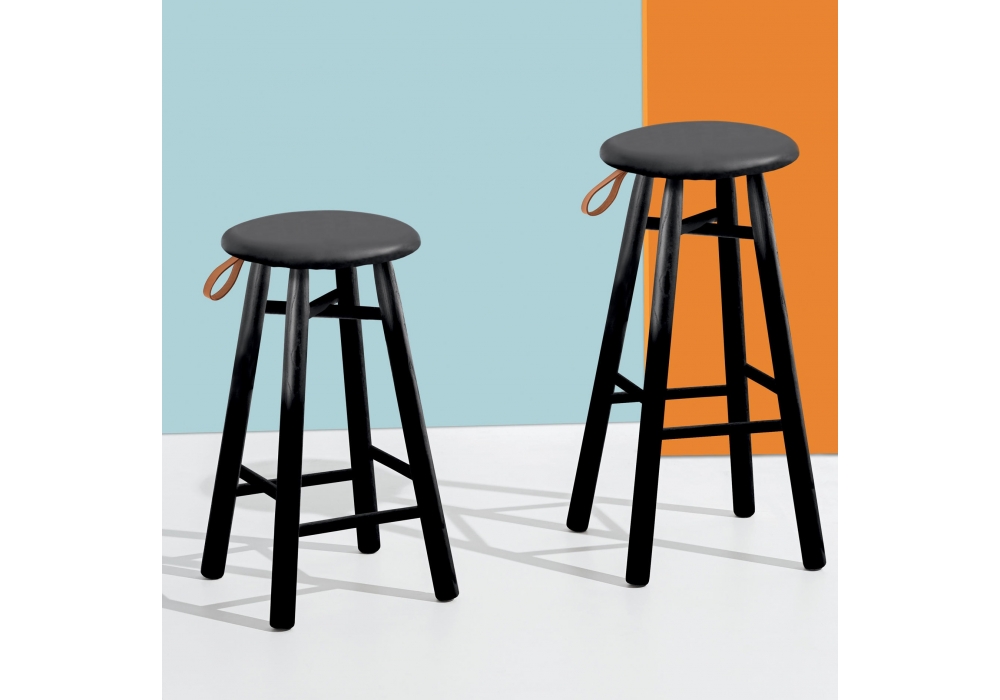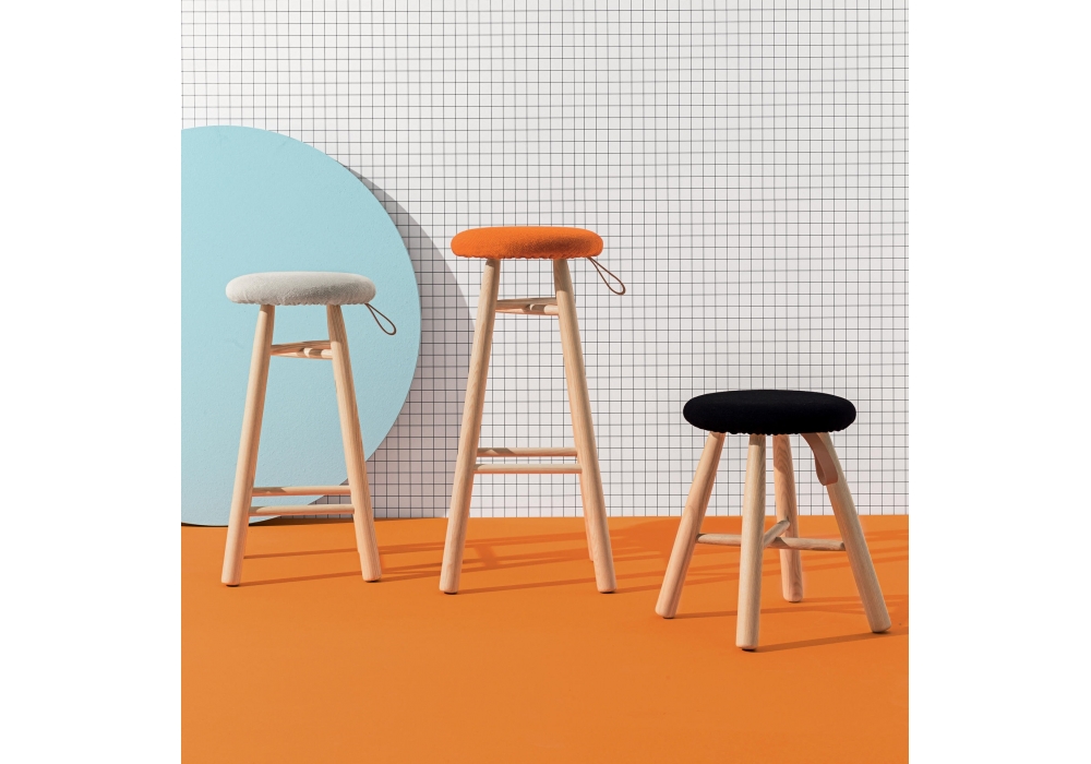 Tag diseñado por Ichiro Iwasaki para Discipline es un taburete realizado en fresno acabado natural o teñido de negro. Tapizado desenfundable en tejido o piel. Disponible en diferentes tamaños.