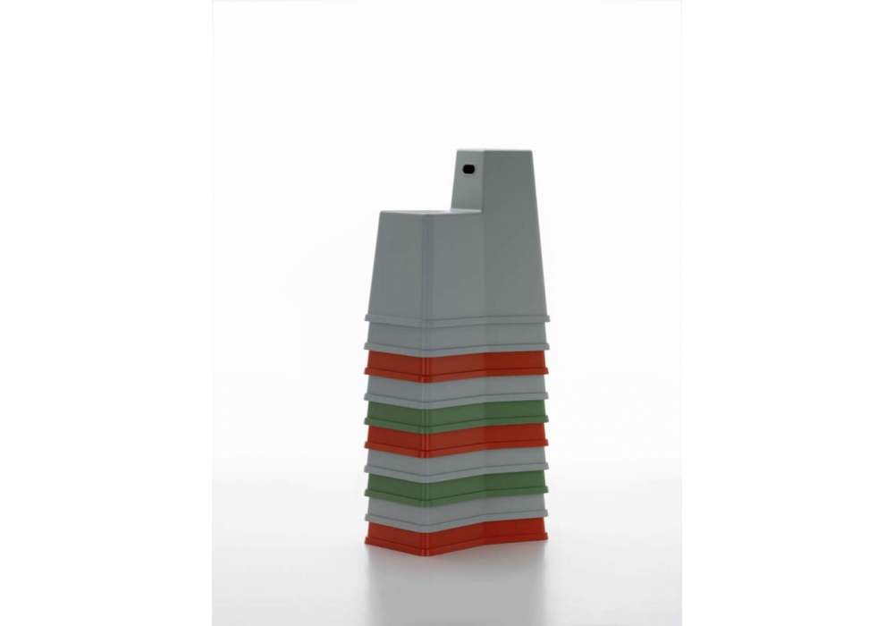 Stool-Tool diseñada por Konstantin Grcic para Vitra es un mueble de oficina multifuncional, silla / taburete y mesa en un solo objeto, apilable. Permite numerosas posiciones de sentado y orientaciones direccionales y el respaldo del escritorio puede actuar como una pequeña superficie de trabajo o superficie de soporte.
