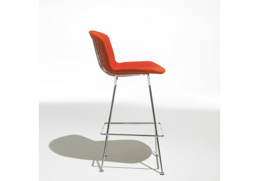 Bertoia diseñado por Harry Bertoia para Knoll es un taburete con estructura de varilla de acero soldada en cada intersección en acabado cromo brillante, satinado, bronce o en Rilsan blanco o negro. Disponible en la versión con cojín o totalmente tapizado.