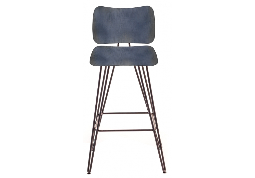 Overdyed diseñado por Diesel Creative Team para Diesel with Moroso es un taburete con carcasa en contrachapado de fresno teñido con anilina y base en acero crudo barnizado negro.