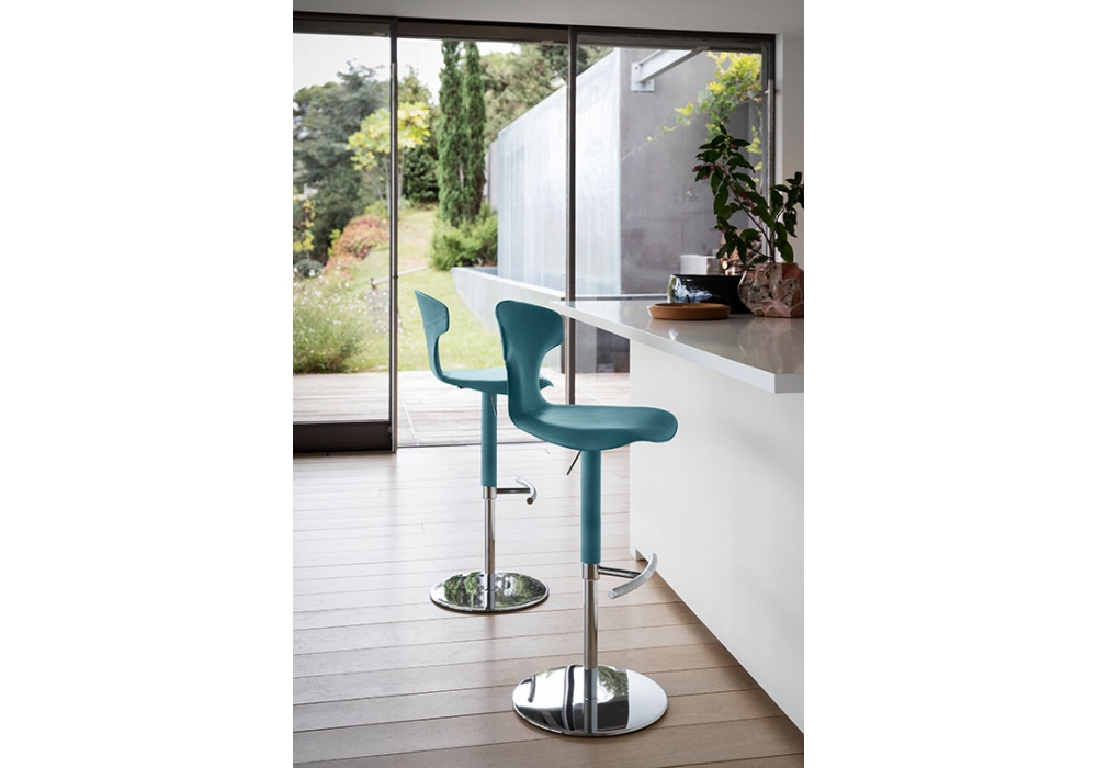 Montera diseñado por Roberto Lazzeroni para Poltrona Frau es un taburete con carcasa de contrachapado de haya moldeado curvado, acolchado con espuma de poliuretano y tapizado en cuero de silla de montar en el exterior y cuero en el interior. La base es de acero cromado, está compuesta por una estructura de placa de unión de cuatro soportes, una columna, un reposapiés tubular y una base redonda plana. La parte superior de la columna (sobre el reposapiés) está tapizada en cuero de silla de montar a juego con la tapicería de la carcasa.