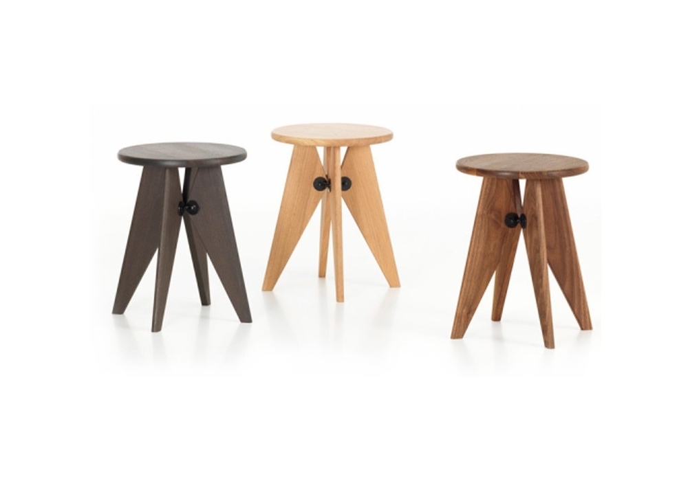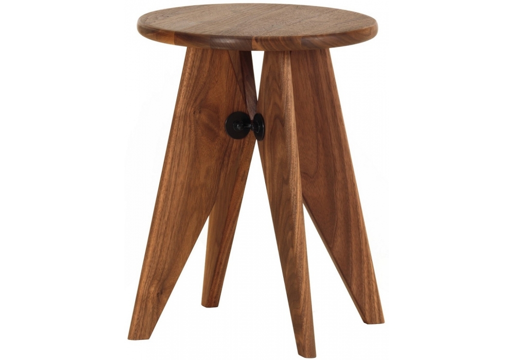 Tabouret Bois diseñado por Jean Prouvé para Vitra es un taburete realizado en madera maciza de roble natural acabado al aceite, roble teñido oscuro acabado con barniz protector natural o nogal americano acabado al aceite. Conexión de chapa con recubrimiento de polvo (liso) en color negro azabache.