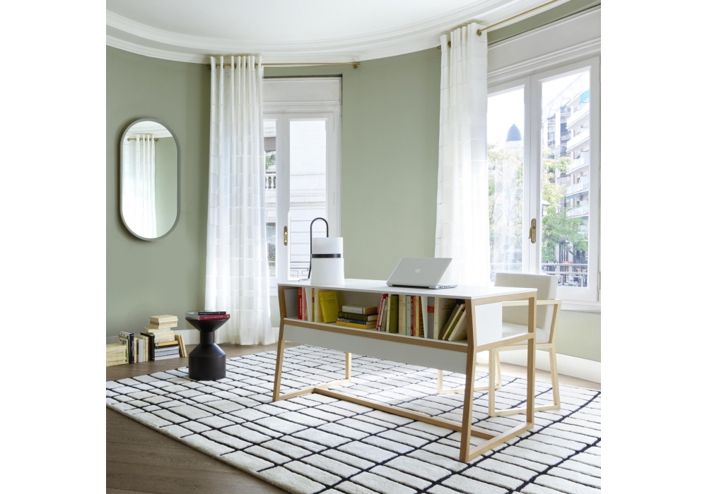 Geometry diseñado por Jacques Ducru para Ligne Roset es un taburete en madera maciza de mango teñida negro.