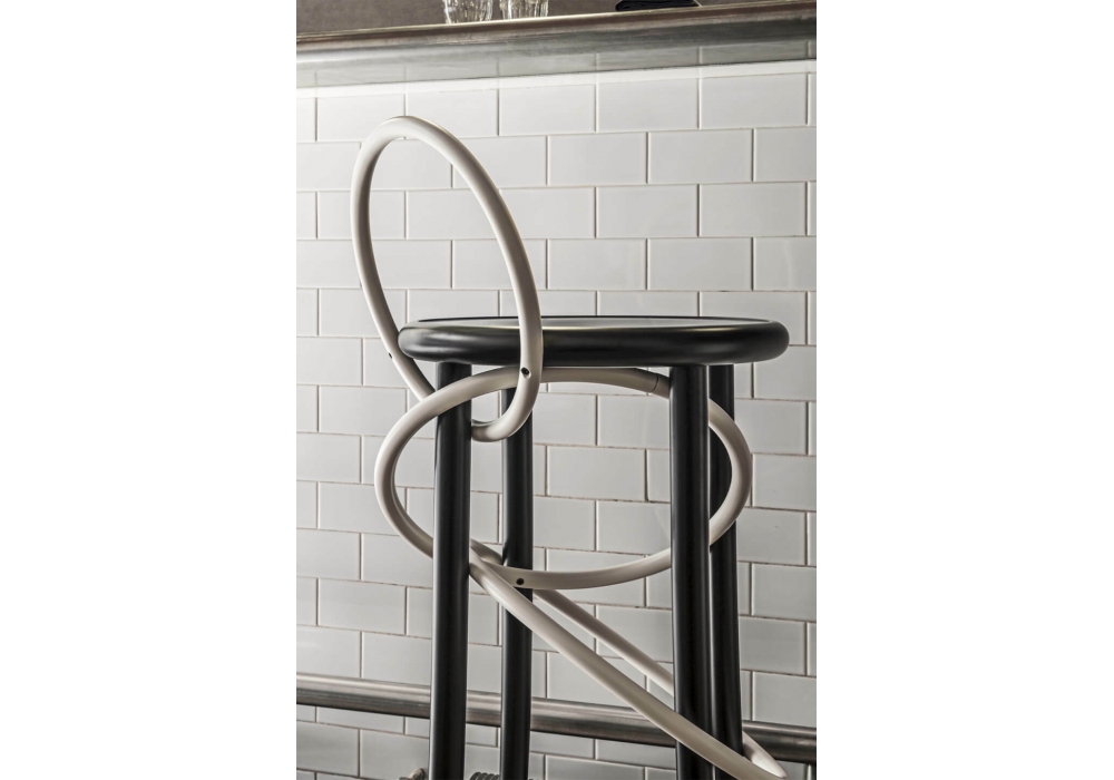 Cirque diseñado por Martino Gamper para Gebrüder Thonet Vienna es un taburete de bar realizado en haya curvada, anillas en el mismo acabado que la estructura o con un color diferente. Taburete disponible en dos versiones.