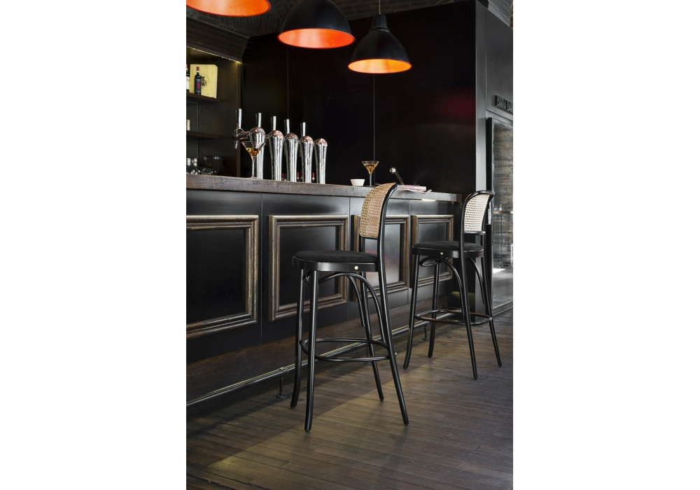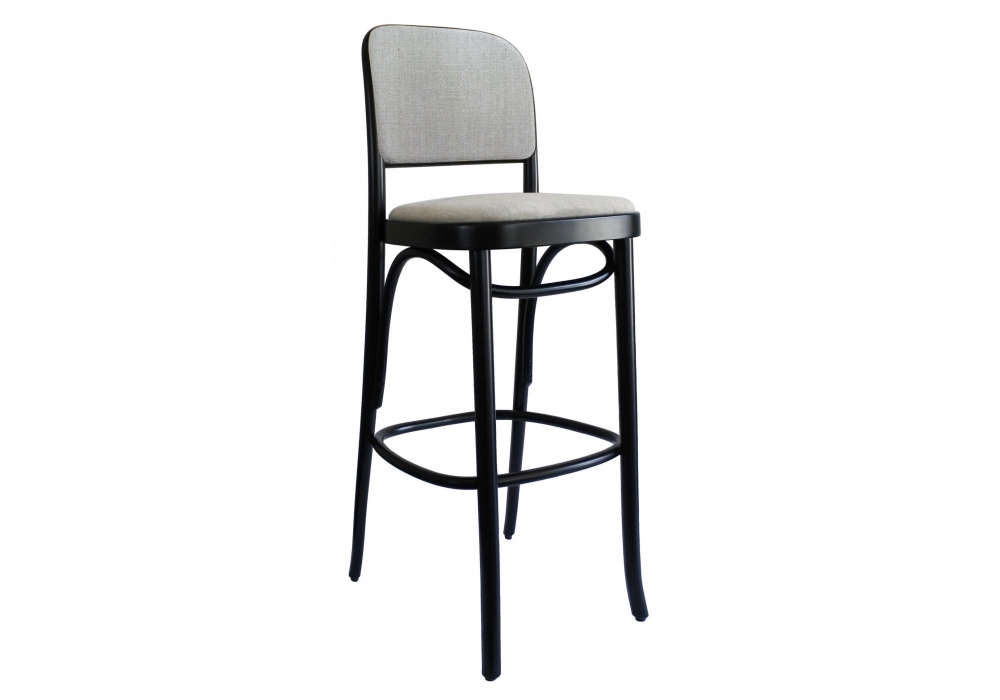 N. 811 diseñado por Josef Hoffmann para Gebrüder Thonet Vienna es un taburete de bar realizado en haya curvada, disponible en diferentes acabados. Asiento tapizado con tapizado en tela o cuero, respaldo de paja Viena o tapizado en el mismo acabado que el asiento.