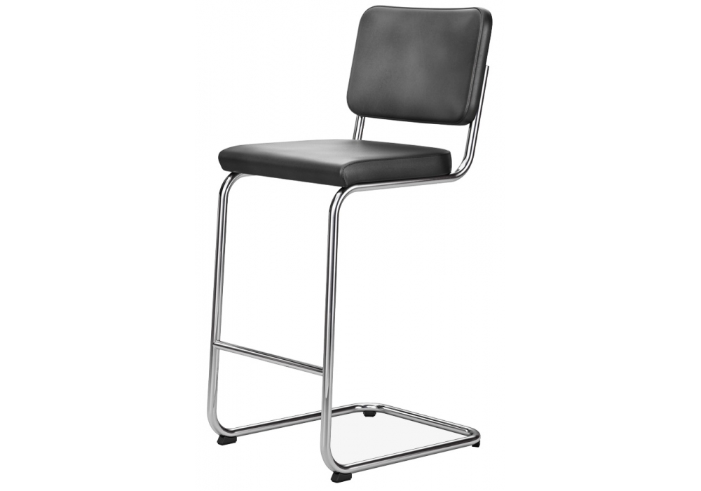 S 32 PVH / S 32 PVHT diseñado por Marcel Breuer, Copyright Artístico Mart Stam para Thonet es un taburete de tubo de acero cromado, disponible en dos alturas. Asiento y respaldo tapizados con tapicería de tela, piel o cuero. Cordón o costura disponible en diferentes versiones.