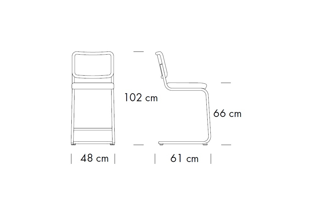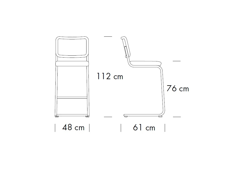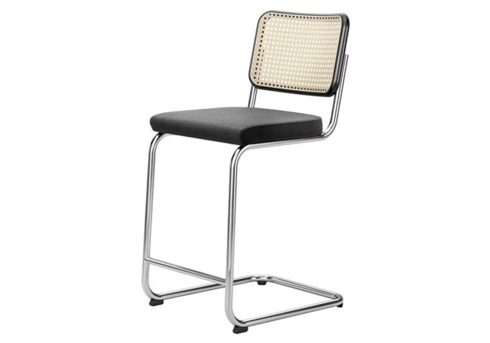 S 32 SPVH / SPVHT diseñado por Marcel Breuer, copyright artístico Mart Stam para Thonet es un taburete con estructura de tubo de acero cromado. Asiento tapizado con tapizado en tejido, piel o cuero con cordón o cosido en diferentes versiones. Dorso en rattan tejido y ribete en haya teñida en diferentes acabados. El taburete también está disponible en dos alturas.