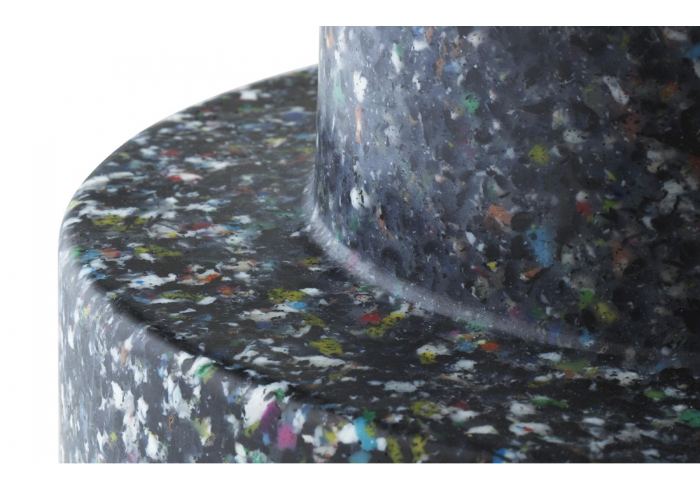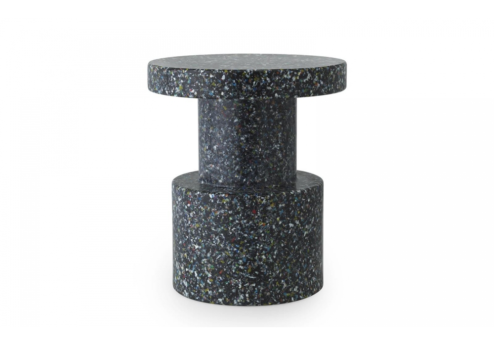 Bit, diseñado por Simon Legald para Normann Copenhagen es un taburete, completamente estructurado en material plástico reciclado, con forma cilíndrica en cuatro acabados diferentes; blanco, negro, multi blanco o multi negro.
