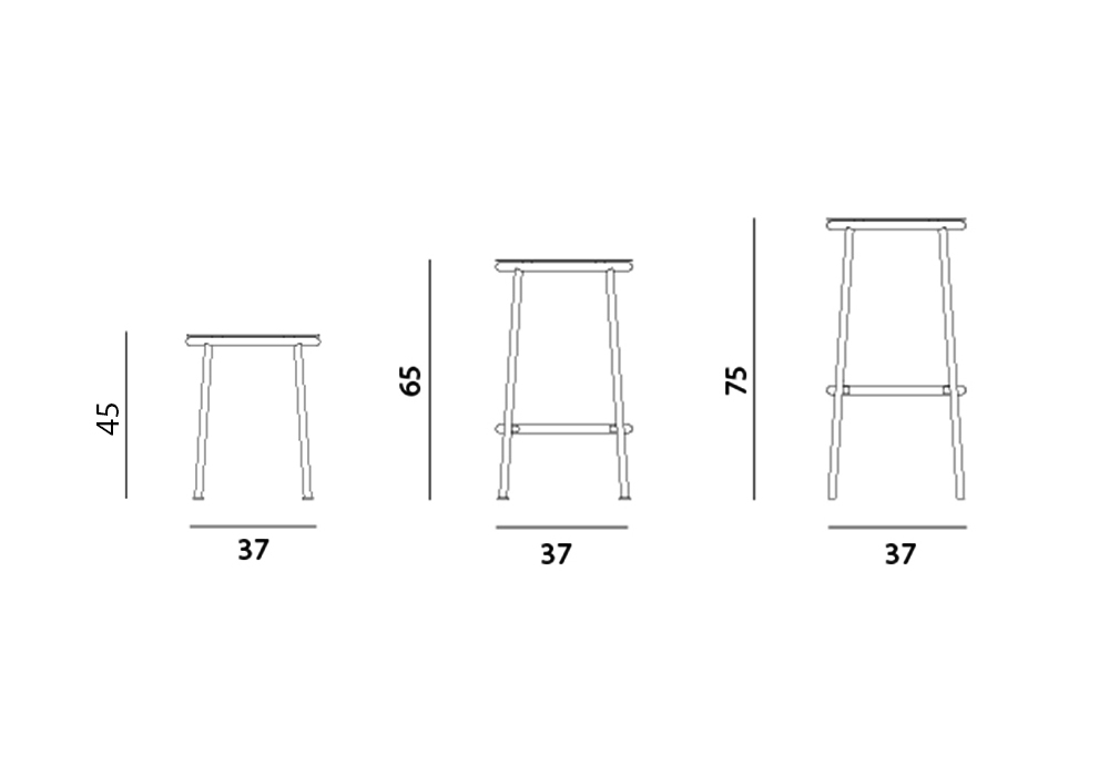 | Dimensiones | Ø 37 x H 45 cm; Ø 37 x H 65 cm; Ø 37 x H 75 cm. |