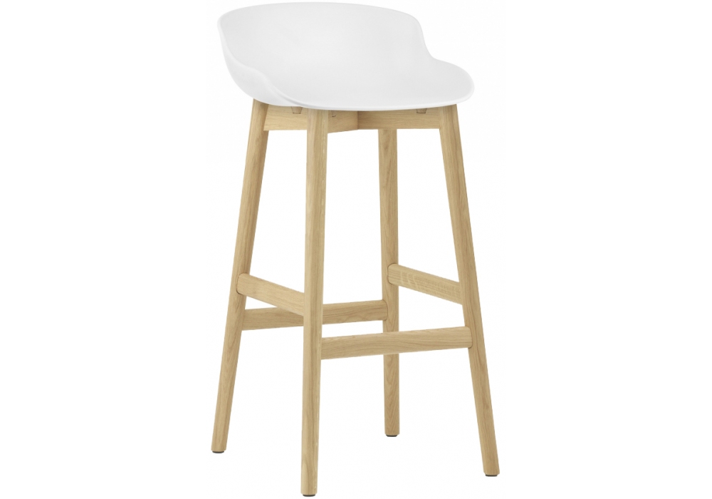 Hyg Wood, diseñado por Simon Legald para Normann Copenhagen es un taburete, con patas y estructura portante en madera de roble natural o negro, y con asiento en material plástico. Hyg está disponible en dos tamaños y diferentes acabados.