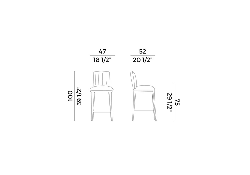 Blossom diseñado por Bernhardt & Vella para Potocco es un taburete con estructura en madera de fresno en diferentes acabados. El asiento y el respaldo están acolchados con espuma de poliuretano ignífuga y revestidos de varios tipos de tejido, piel o ecopiel.