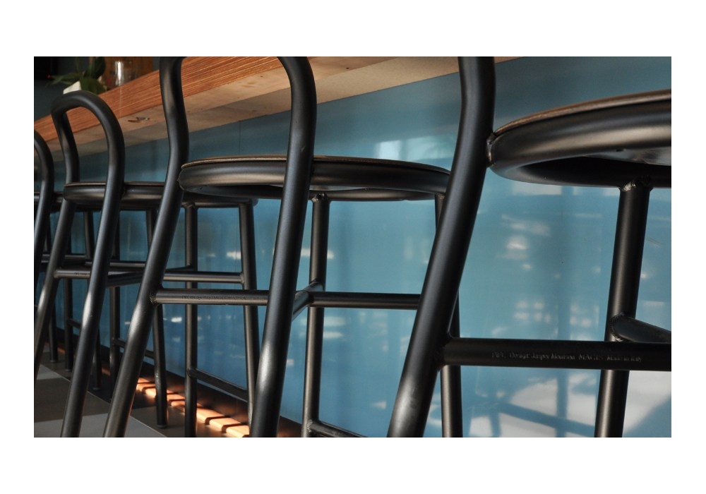 Pipe Beech diseñado por Jasper Morrison para Magis es un taburete con estructura en tubo de aluminio pintado poliéster en varios acabados y asiento en chapa de haya.