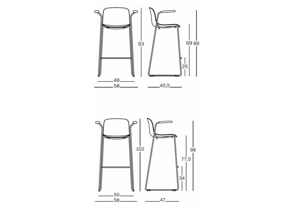 | Dimensiones | 58 x 45.5 x H 93 cm; 58 x 47 x H 102 cm. |