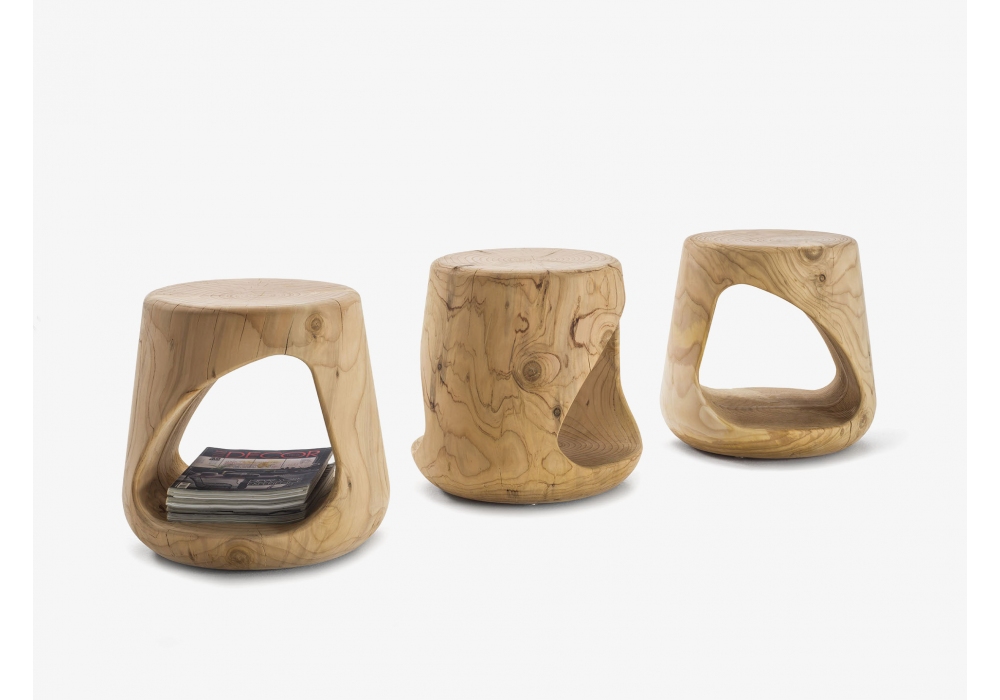 Geppo diseñado por Marco Baxadonne para Riva 1920 es un taburete realizado en cedro macizo. Se puede utilizar como mesa auxiliar, o mesita de noche.