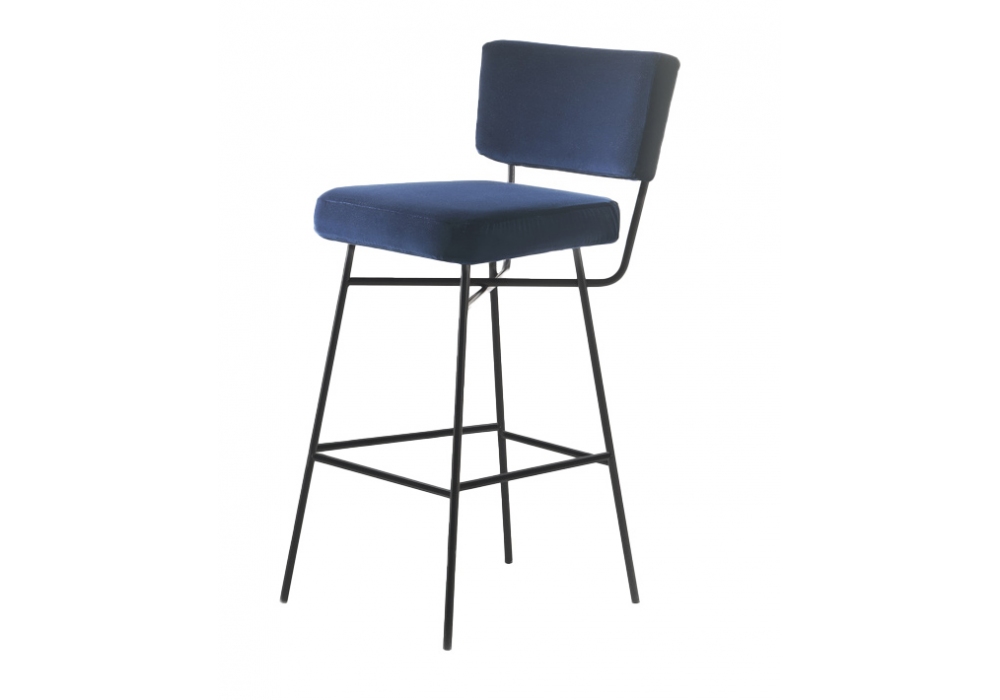 Orfeo diseñado por Alberico B. Belgiojoso para Arflex es un taburete con estructura en metal lacado negro. Tapicería en tela o piel. Totalmente desenfundable, excepto la versión en piel.