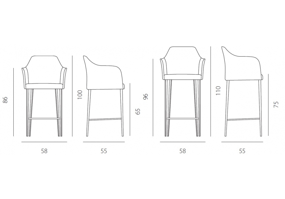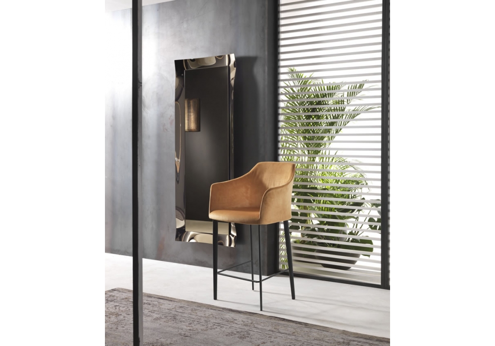Carmen diseñado por Stefano Sandonà y Sabrina Bettini para Riflessi es un taburete con reposabrazos con acolchado en poliuretano flexible moldeado en frío y estructura de acero. La estructura del marco está integrada en el cuerpo. Patas pintadas en aluminio y tapizado en tela o piel. Disponible en diferentes acabados y dimensiones.