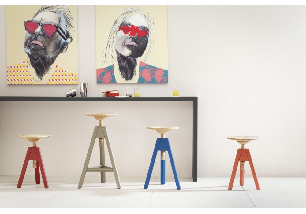 Vitos diseñado por Paolo Cappello para Miniforms es un taburete con asiento en haya y estructura en acabado lacado. Disponible en diferentes acabados y medidas.