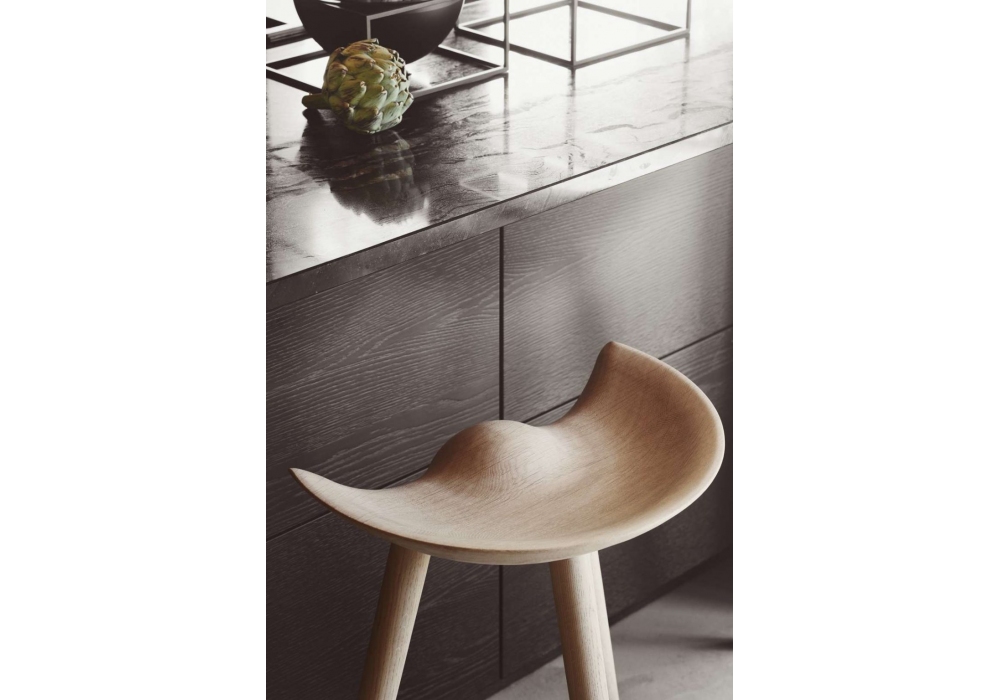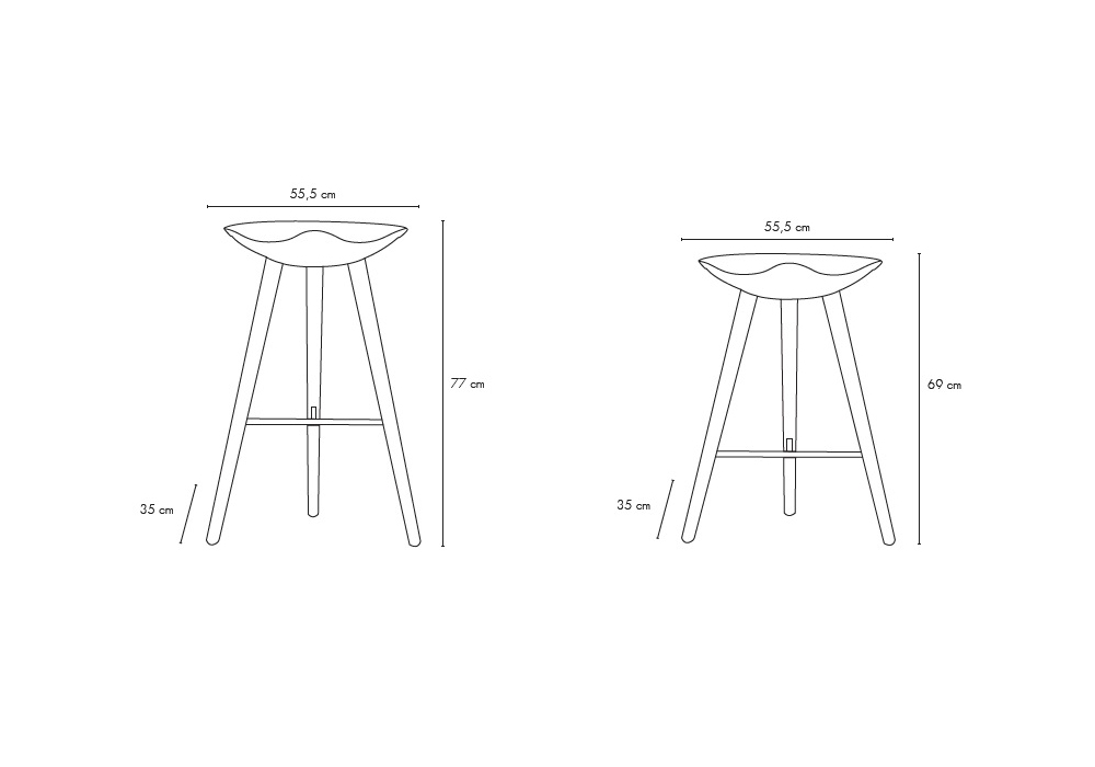 ML42 diseñado por Mogen Lassen para Audo Copenhagen es un taburete bar realizado en roble aceitado o enjabonado o haya teñida de negro. Reposapiés disponibles en acero, cobre o latón. Disponible en diferentes acabados y dimensiones.