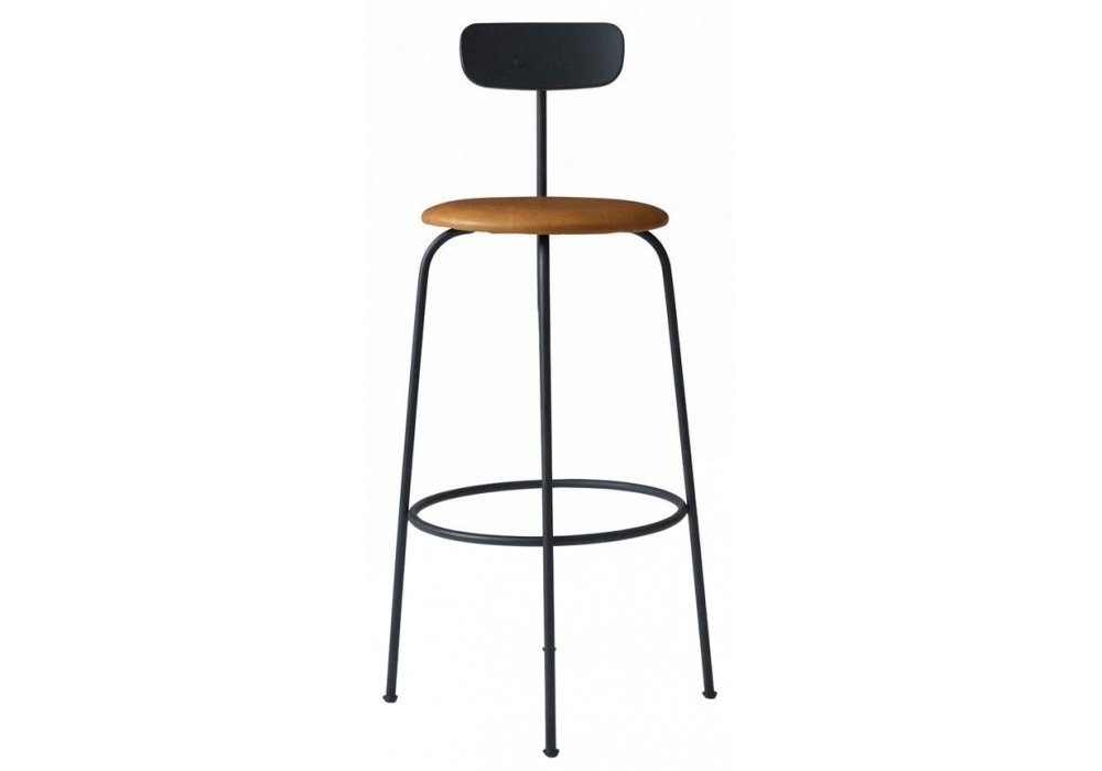 Afteroom Counter diseñado por Afteroom Studio para Audo Copenhagen es un taburete realizado en acero pintado en polvo negro, asiento acolchado con revestimiento de tela o piel. Disponible en diferentes acabados y medidas.