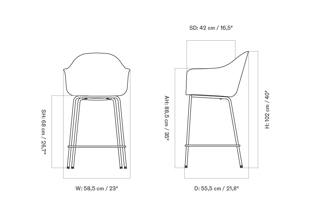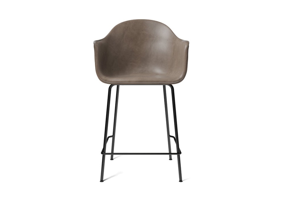 Harbour Counter diseñado por Norm Architects para Audo Copenhagen es un taburete con carcasa tapizada, tapizada en tejido o piel, patas de acero pintado en polvo negro. Disponible en diferentes acabados y medidas.