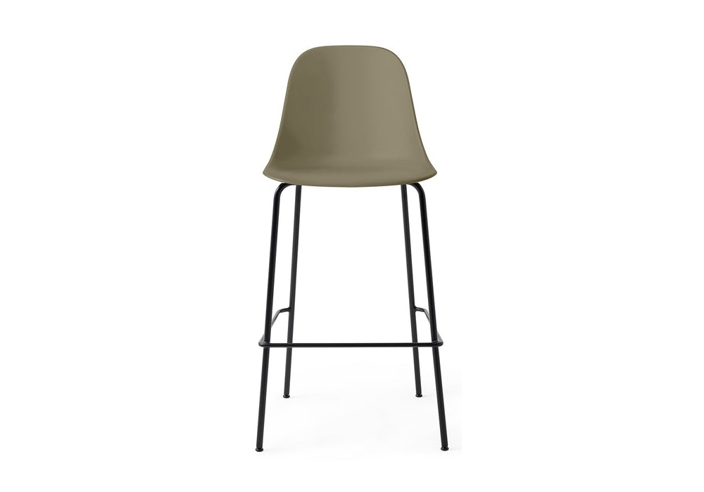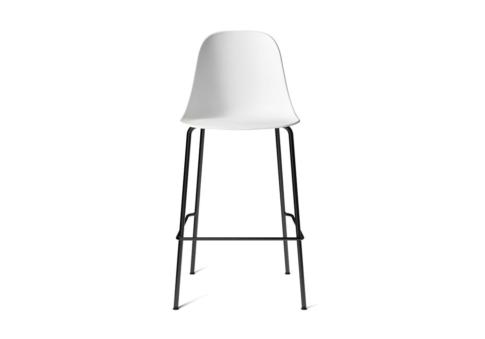 Harbour Side Counter diseñado por Norm Architects para Audo Copenhagen es un taburete con carcasa de polipropileno y patas de acero con recubrimiento de polvo negro. Disponible en diferentes acabados y medidas.