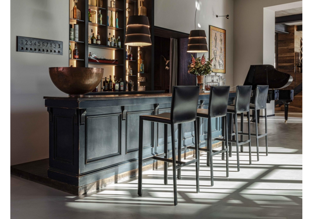 Pasqualina diseñado por Grassi&Bianchi para Enrico Pellizzoni es un taburete con estructura en tubo de acero completamente revestida en piel, disponible en diferentes colores. Asiento inferior de chapa revestida de tejido técnico negro. El taburete Pasqualina también está disponible en diferentes tamaños.