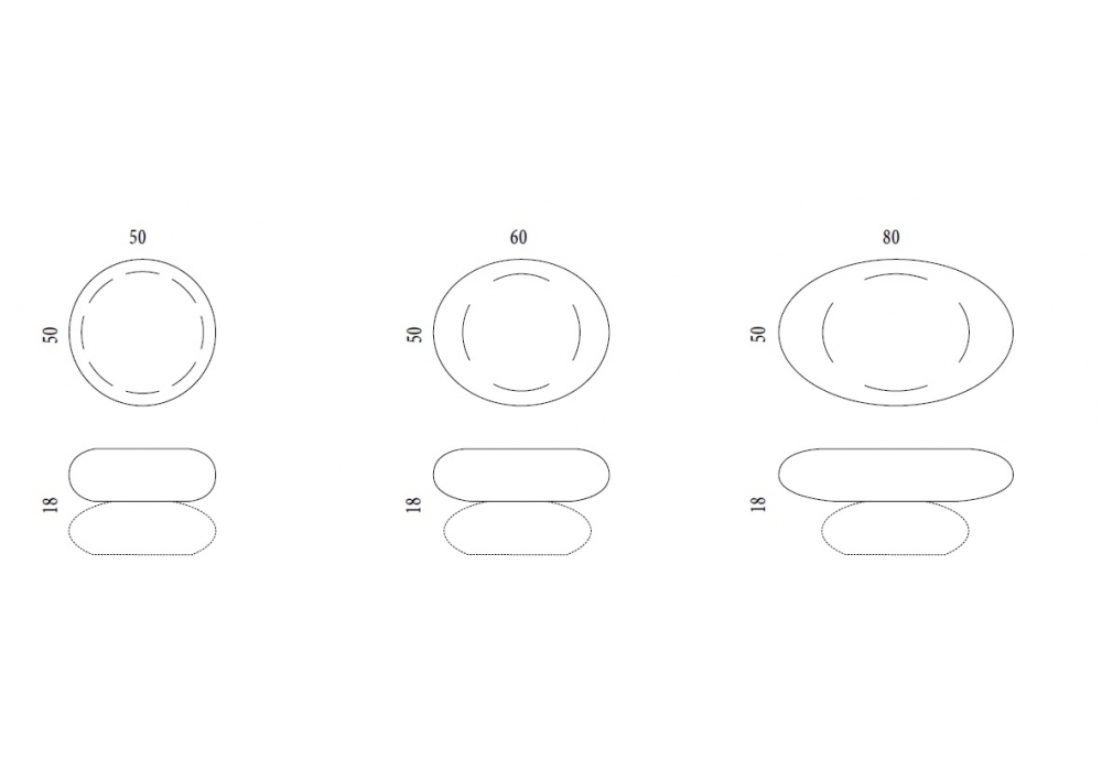 | Dimensiones | Ø 50 x H 18 cm; 60 x 50 x H 18 cm; 80 x 50 x H 18 cm. |