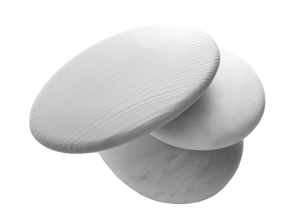 Keir diseñado por Enzo Berti para Kreoo es un taburete con base formada por dos "pebbles" realizados en mármol en diferentes acabados y asiento en madera de alerce. Disponible en diferentes dimensiones.
