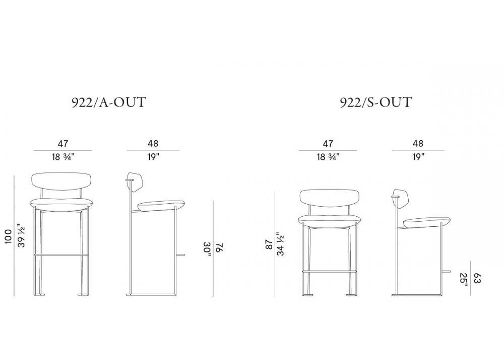 Keel Outdoor diseñado por M + V para Potocco es un taburete de exterior con estructura en varilla de metal pintado gofrado, respaldo en Iroko macizo y asiento tapizado en espuma de poliuretano ignífuga con tapizado en varios tejidos.