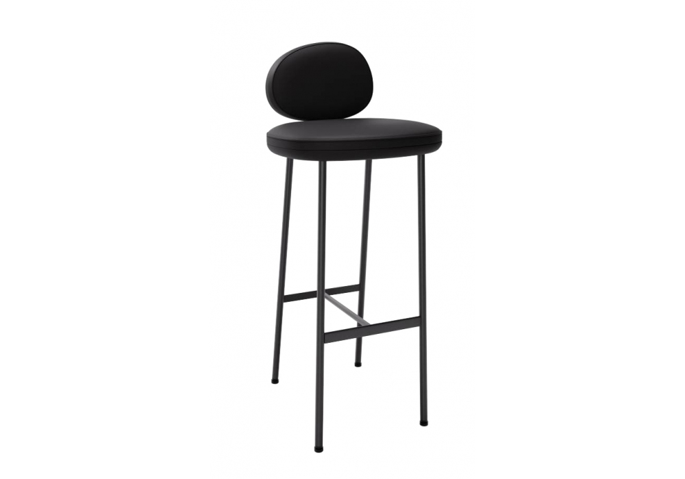 Pebble diseñado por Lanzavecchia + Wai para Living Divani es un taburete con estructura íntegramente en acero pintado en Gunmetal Grey y reposapiés revestido en goma rígida. El asiento y el respaldo se componen de dos carcasas con partes externas de contrachapado de álamo revestido y partes internas de panel contrachapado de álamo y acolchado de espuma de poliuretano perfilada, ambas revestidas con una funda. La tapicería está disponible tanto en piel como en tela. Pebble está disponible en diferentes modelos y acabados de revestimiento.