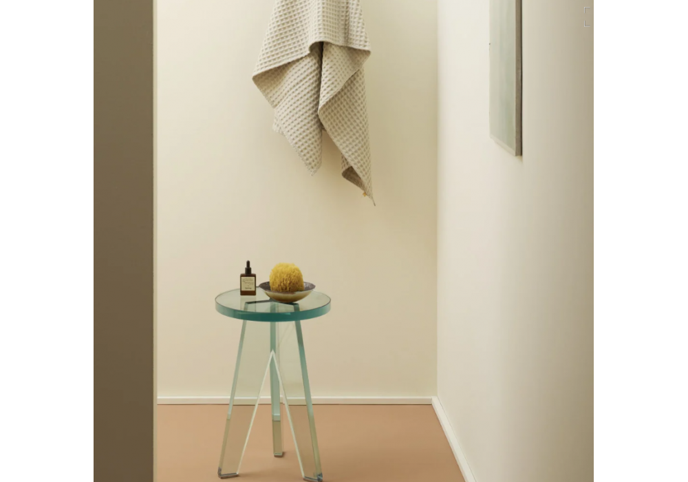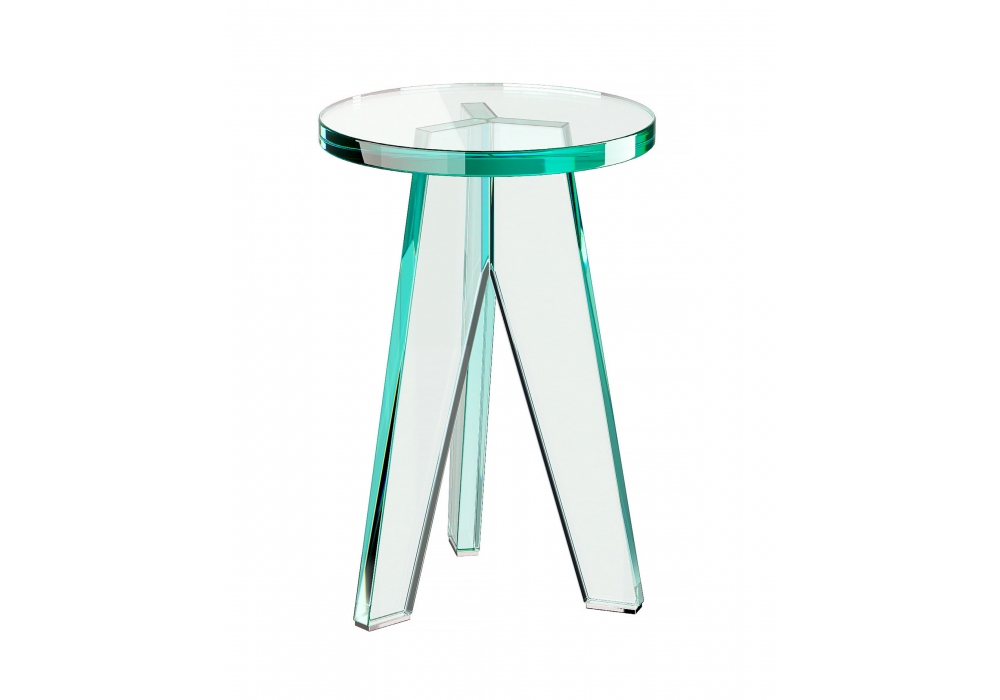 Crystal Taburete diseñado por Philippe Starck para Glas Italia es un taburete realizado íntegramente en láminas de vidrio templado transparente con un espesor de 24 mm. Los pies son de acero inoxidable pulido espejo, lo que enriquece aún más el objeto.