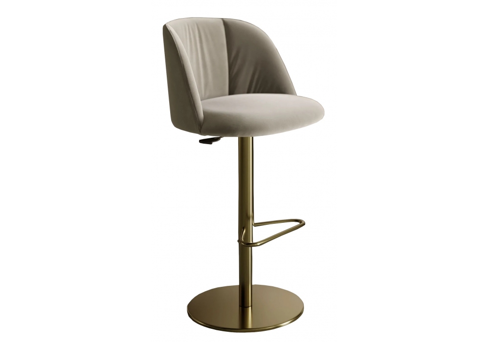 Agatha diseñado por E-ggs para Bontempi es un taburete giratorio y regulable en altura con elevación de gas cromado, estructura de acero cromado o lacado. Asiento y respaldo acolchados revestidos en tela o piel. Disponible en diferentes acabados.