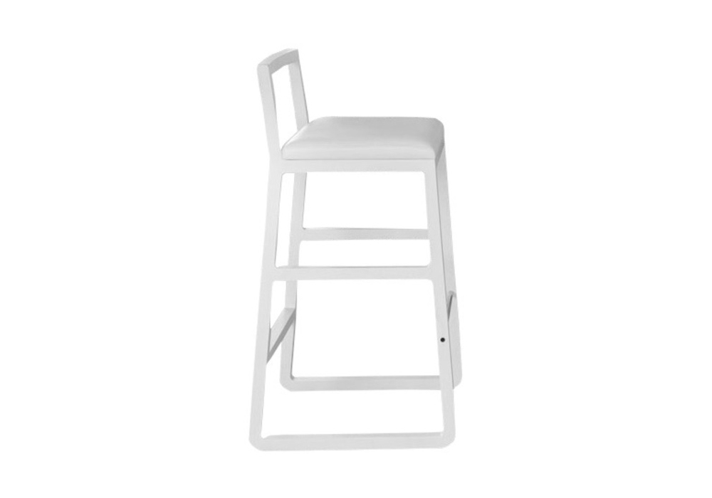 Midori diseñado por Ebualà para Midori es un taburete realizado en fresno macizo, asiento acolchado revestido en tela o piel, reposapiés en acero inoxidable pulido. Disponible en diferentes acabados y tamaños.