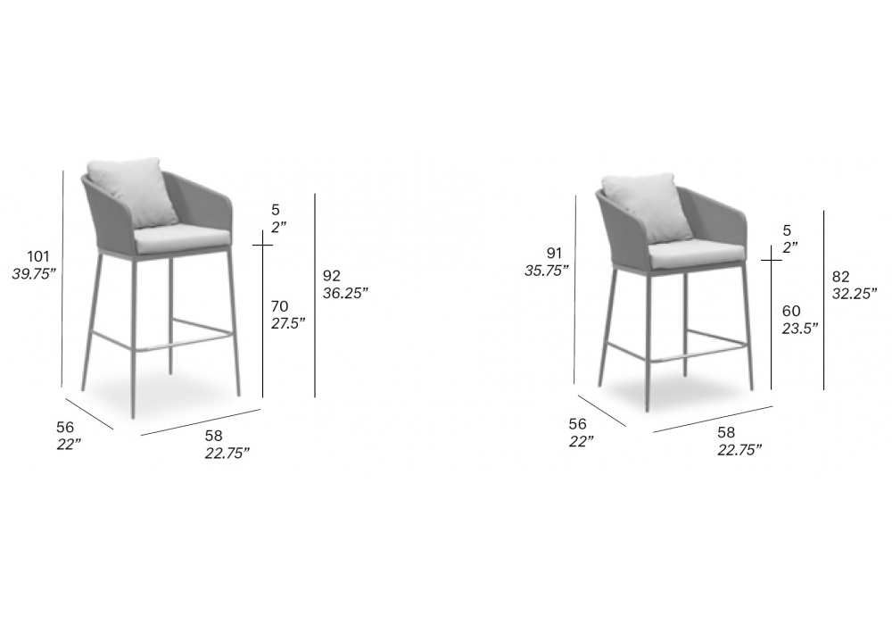| Dimensiones | • 58 x 56 x H 91 cm; • 58 x 56 x H 101 cm |