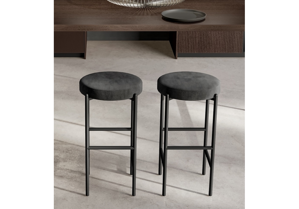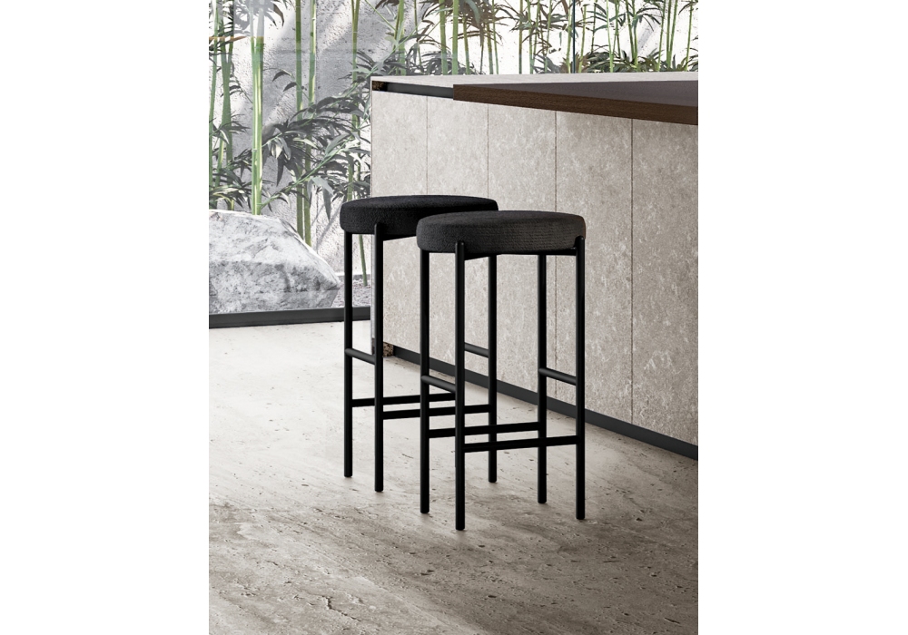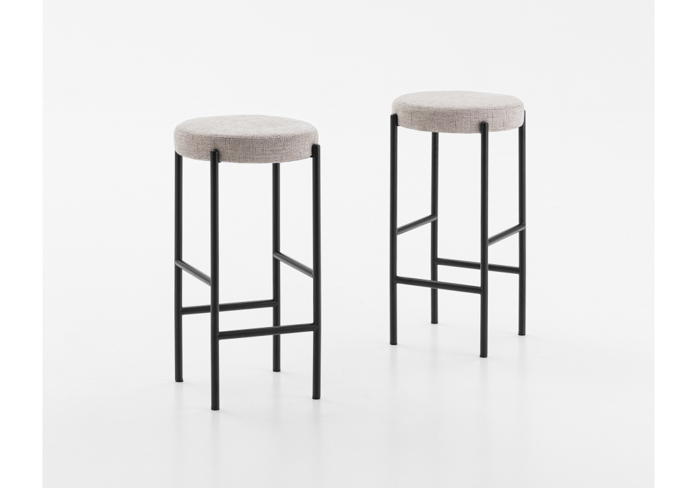Supernova diseñado por Dall'Agnese es un taburete acolchado realizado con estructura de metal y tapizado en tela, piel o ecopiel.