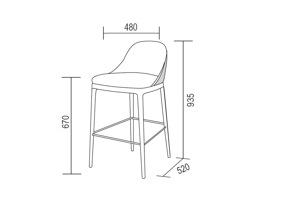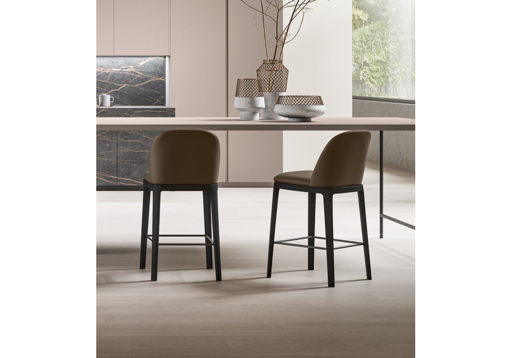 Joelle diseñado por Dall'Agnese es un taburete acolchado realizado con estructura de madera y tapizado en tejido, piel o ecopiel. Talonera cromada.