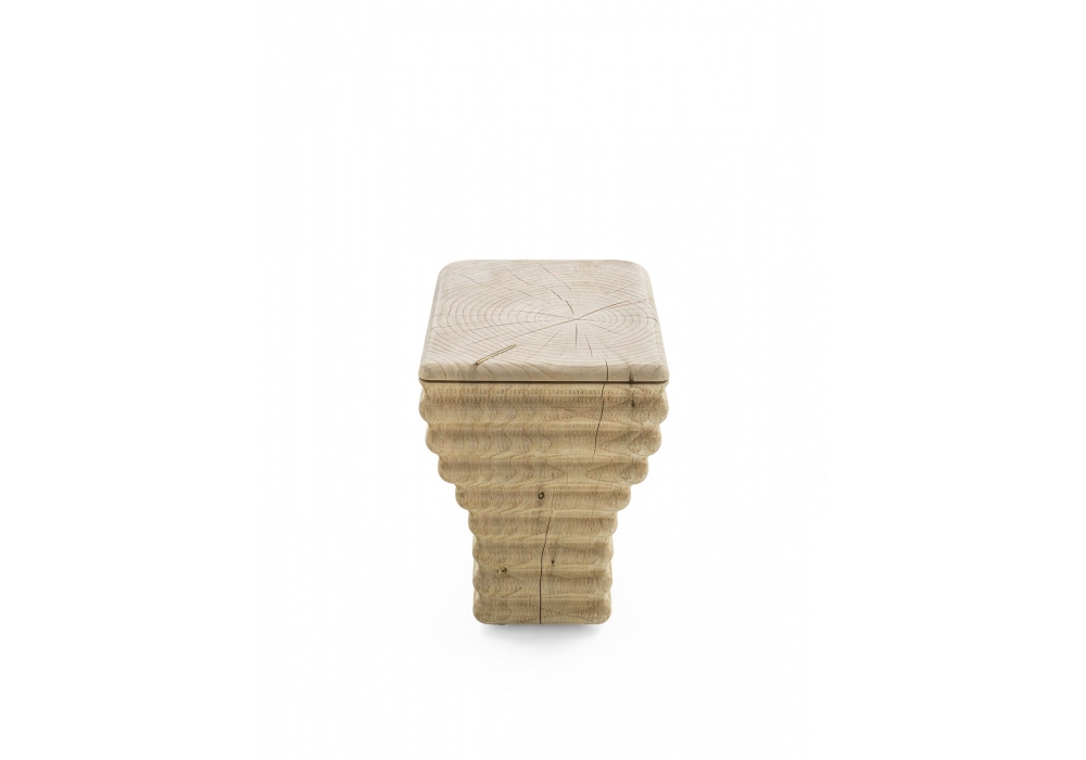 Waves diseñado por Authentic Design para Riva 1920 es un taburete de madera maciza de cedro perfumado trabajado a partir de un solo bloque y caracterizado por un diseño de ondas.