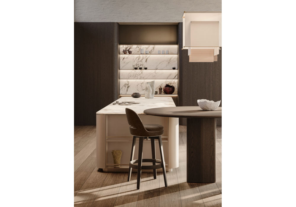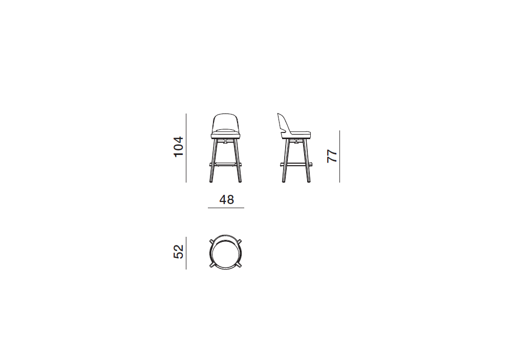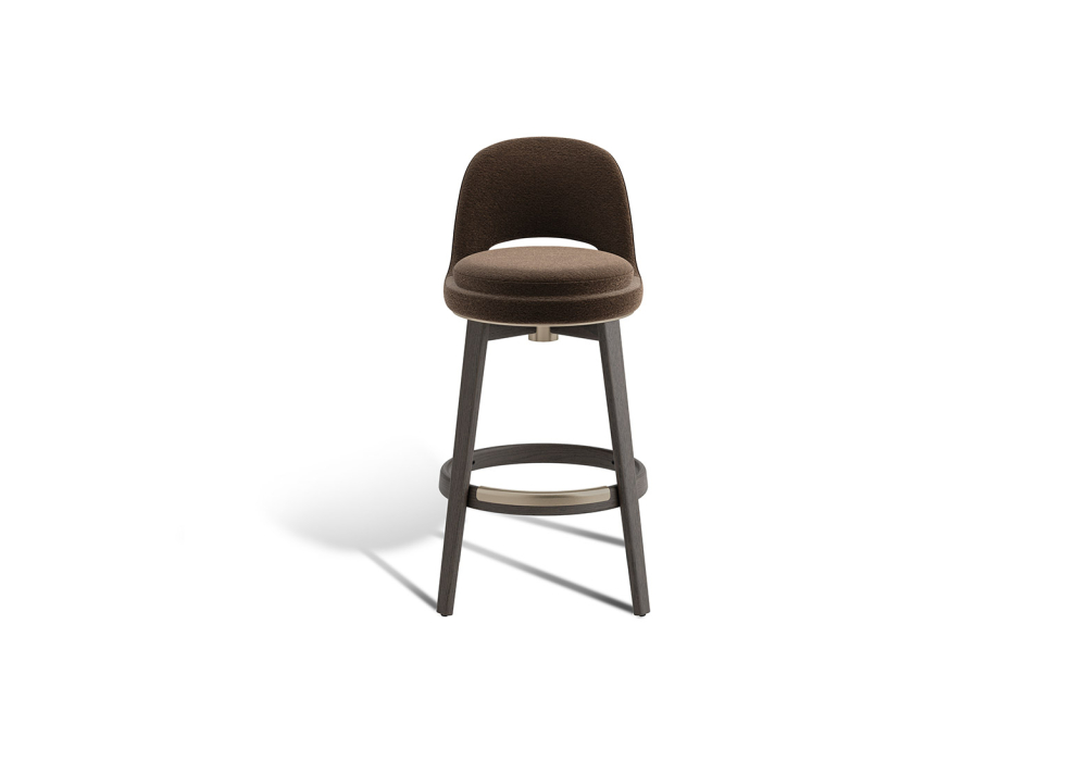Mollis diseñado por Vincent Van Duysen para Molteni&C es un taburete con base de madera maciza teñida y estructura de acero pintado bajo el asiento. Cuenta con un asiento giratorio de 360° con retorno. El reposapiés es de aluminio pintado. El asiento y el respaldo tienen una estructura de Polimex y relleno de espuma de poliuretano de densidad variable. El cojín es de poliuretano anatómico y está recubierto de fibra de poliéster.