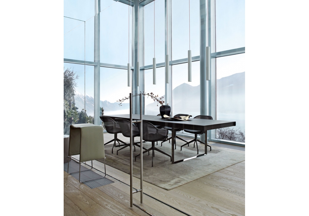 Lazy '05 diseñado por Patricia Urquiola para B&B Italia es un taburete disponible en dos dimensiones. Estructura en acero cromado pulido y revestimiento en tejido o piel.