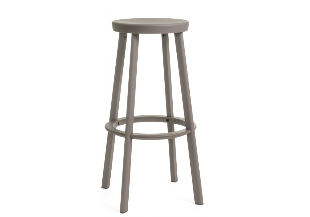 Déjà-vu diseñado por Naoto Fukasawa para Magis es un taburete con patas en perfil de aluminio; asiento y respaldo en fundición de aluminio pulido o pintado en varios acabados.