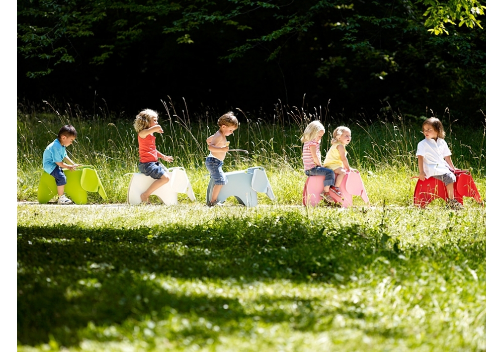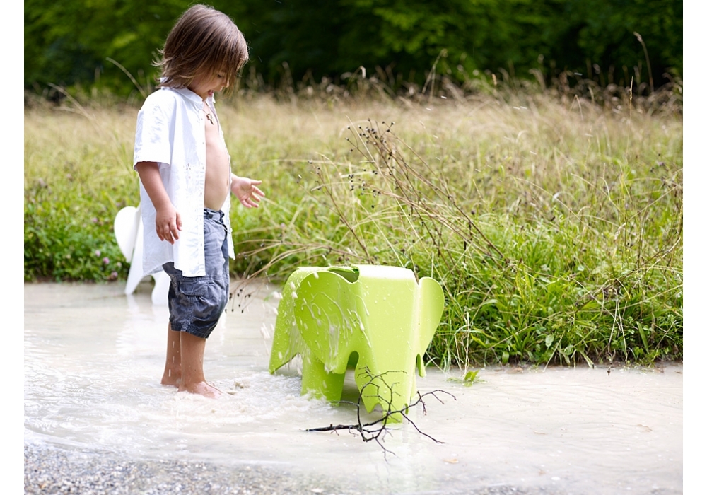 Vitra Eames Elephant: Casi ningún otro animal goza de tanta popularidad como el elefante. Admirado por su tamaño majestuoso y querido por su bondad, pertenece a nuestra vida cotidiana como animal de peluche, como figura de cuentos e incluso como animal heráldico. Charles y Ray Eames también sucumbieron al encanto de este paquidermo y desarrollaron en 1945 un elefante de juguete en madera contrachapada que sin embargo nunca se produjo en serie. Es ahora cuando el Eames Elephant en plástico se hace accesible para aquéllos para los que se concibió originalmente: los niños. Sea como juguete (también al aire libre) u objeto para la habitación de los niños - no cabe duda que este amable animal con sus orejas características de tamaño excesivo encantará a pequeños como adultos.