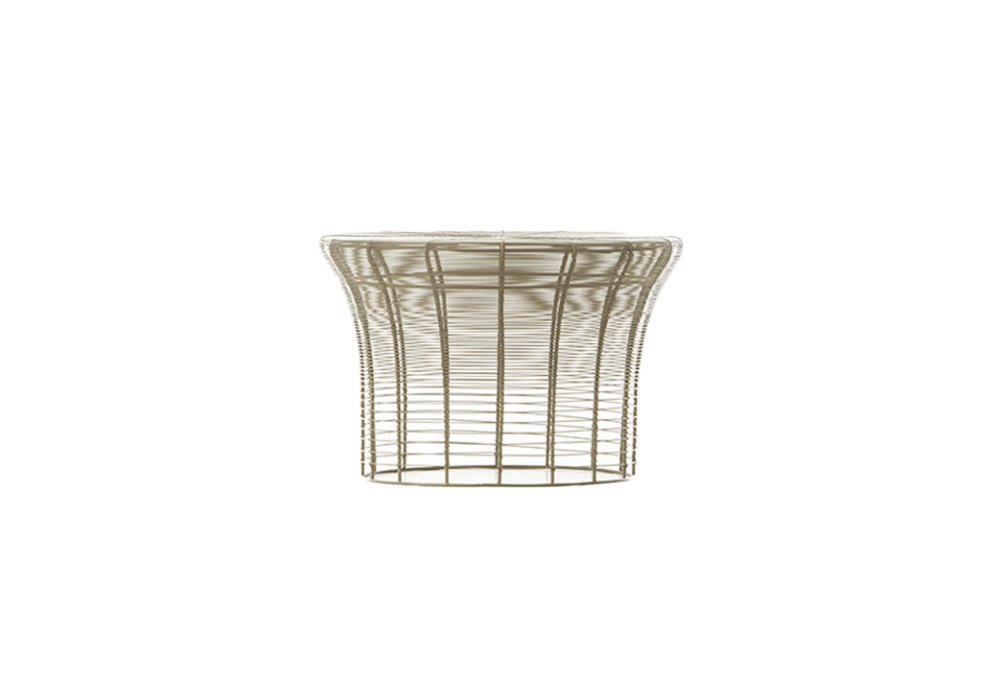Aram diseñado por Nendo para Gan es un taburete hecho a mano con alambre de acero inoxidable termolacado. Disponible en diferentes medidas y acabados.