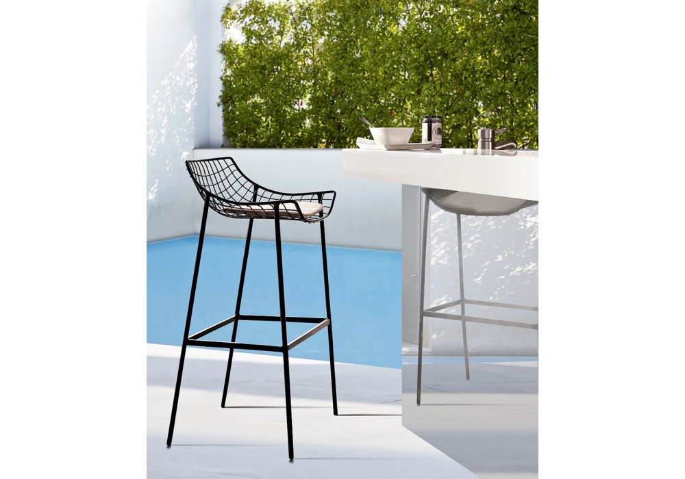 Summer Set diseñado por Christophe Pillet para Varaschin es un taburete con estructura de acero pintado en polvo. Cojines extraíbles. Disponible en diferentes acabados.